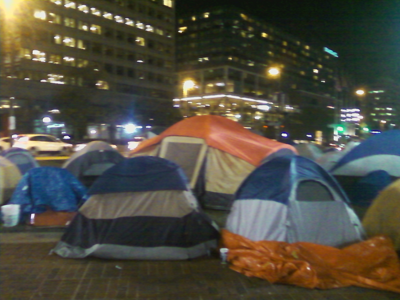 The Parks Department offered its own, uniform colored tents for the protesters to use during the day, replacing the sagging collection of tarps that have sheltered Occupy’s media, food, and medical areas. Parks also was willing to allow one occupier to stay overnight in a single tent—presumably provided by the city. Other instructions by the city related to vacating the square for other scheduled events, and limited Occupy’s sprawl to a designated section of the public square.
